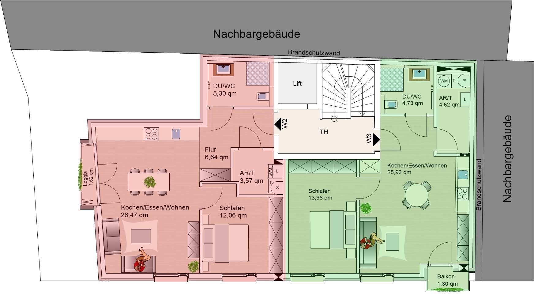 Attraktive Wohnungsgrößen von 50 m² - 107 m².