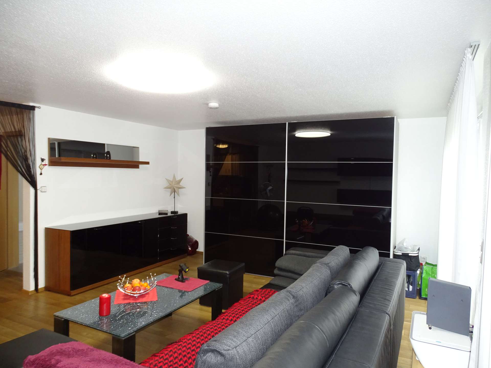 Gepflegte Wohnung mit großer Fensterfront zur großen Gartenterrasse.